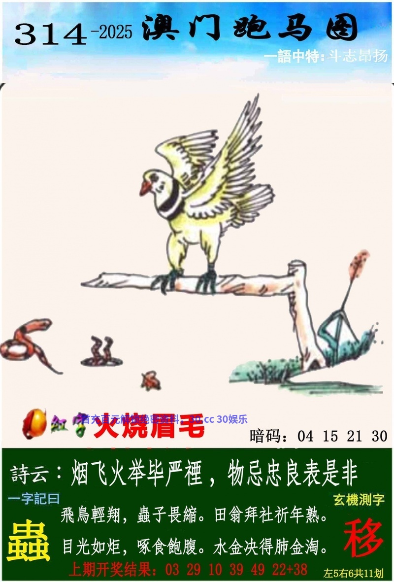 | 稳中三肖 | 羊蛇鸡 | 开:蛇37 |