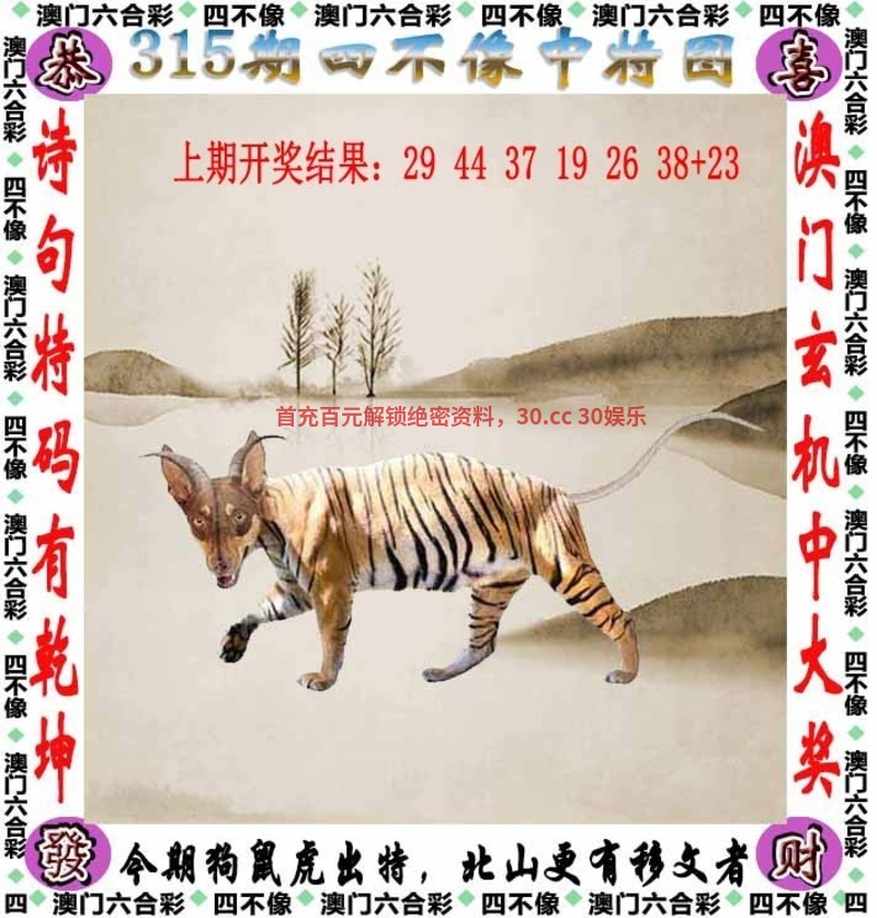 | 稳中六肖 | 鸡兔蛇狗龙虎 | 开:虎04 |